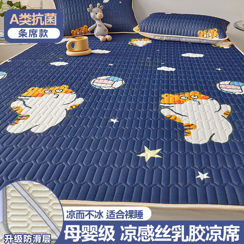 南极人乳胶凉席三件套软席子0.9m冰丝1.8m床可水洗可折叠夏季 200*220cm凉席+2只枕套 小老虎加厚乳胶加倍凉感母婴可用