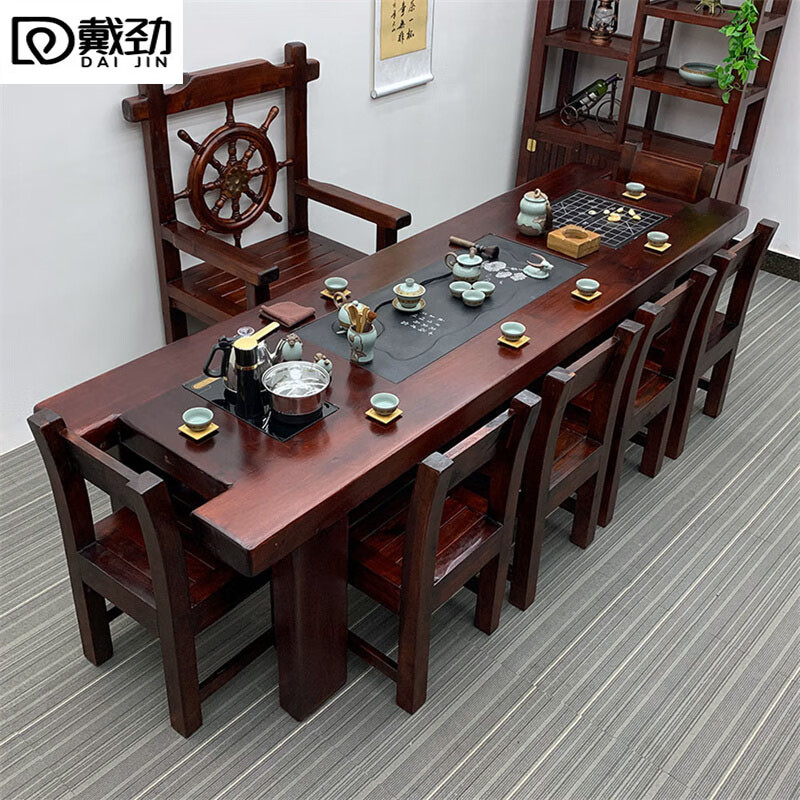戴劲茶台老船木茶桌椅组合中式家具功夫小茶几茶艺茶具套装一体2.6米