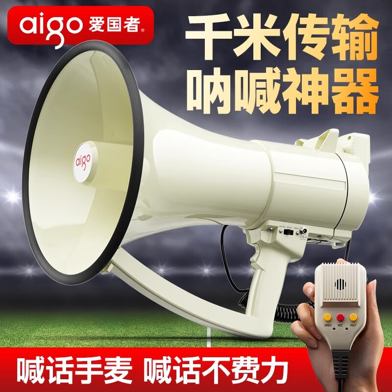 爱国者(aigo)手持喊话器大喇叭扩音器录音宣传摆摊叫卖器小型大声公扬声器 A69(米色)