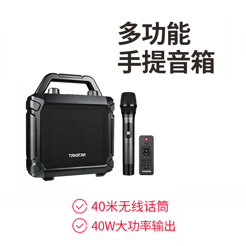 得胜 便携式无线扩音器 大功率广场舞音箱 UHF无线麦克风K歌蓝牙插卡播放黑色