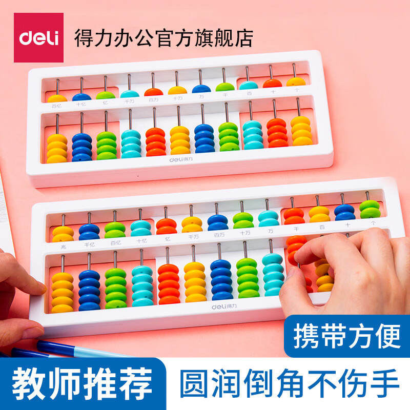 得力(deli) 74320_5珠11档 白色 儿童算盘 学生5珠11档教学算盘珠心算数学教具 珠算算盘