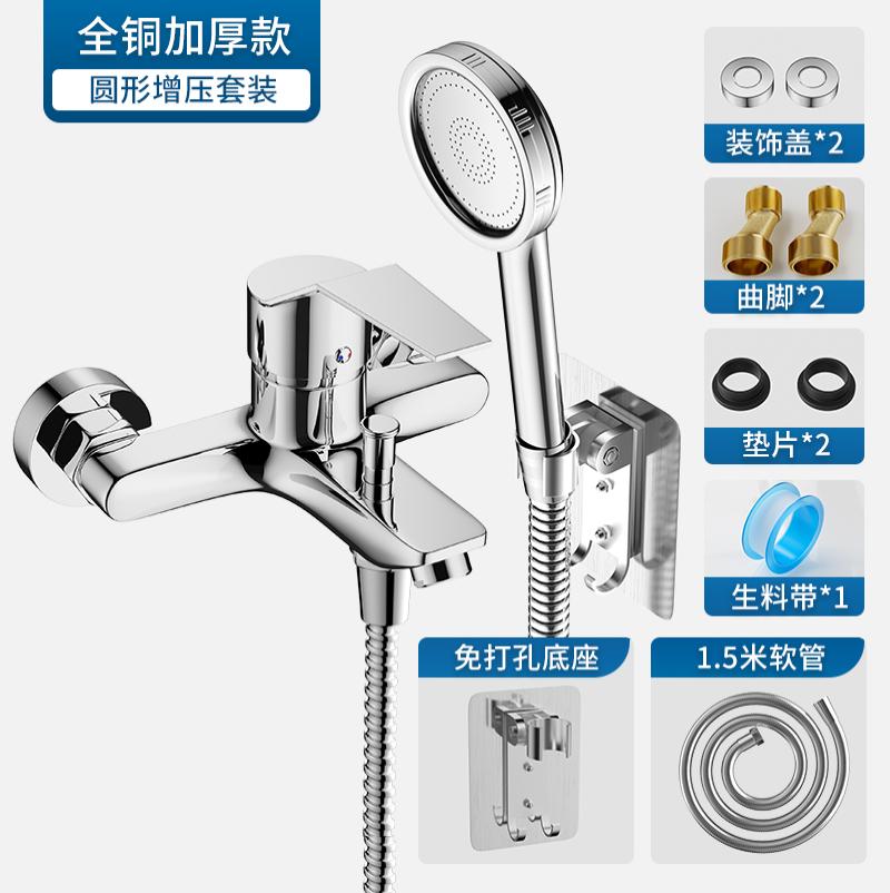 混水阀全冷热铜水龙头淋浴洗澡混合开关龙头浴室浴缸三联花洒套装--全铜加厚款—【圆形增压套装】