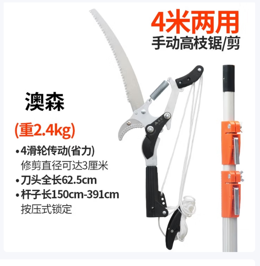 TOMSPOWER 高枝高空粗枝伸缩多功能 手动农具加长杆修剪剪刀 4米澳森两用手动高枝锯/剪(重2.4kg)