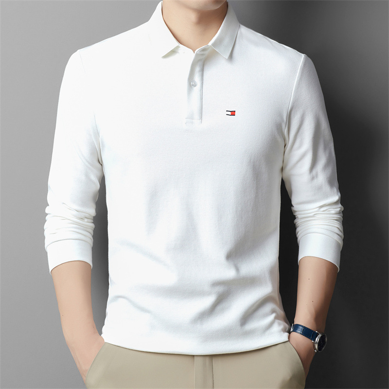 纯棉polo衫男2025春季新款翻领长袖商务休闲透气长袖t桖男装 XL/52 白色