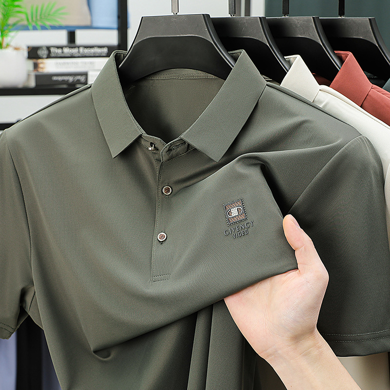 2025年夏季新款T恤男商务休闲翻领短袖polo衫纯色男装T恤 3XL 军绿
