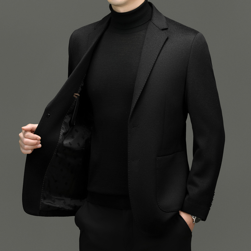 轻奢双面羊绒西服男士短款休闲毛呢商务羊毛西装便西外套秋冬高端羊绒西装男桑蚕丝毛呢便西商务休闲羊毛西服男士单西外套 63965黑色 180