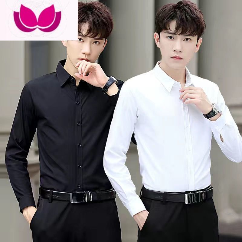 七斓捡漏白色长袖衬衫商务正装休闲职业上衣免烫结婚西装男士衬衣 L建议90-110斤 黑色+白色长袖衬衫纯色