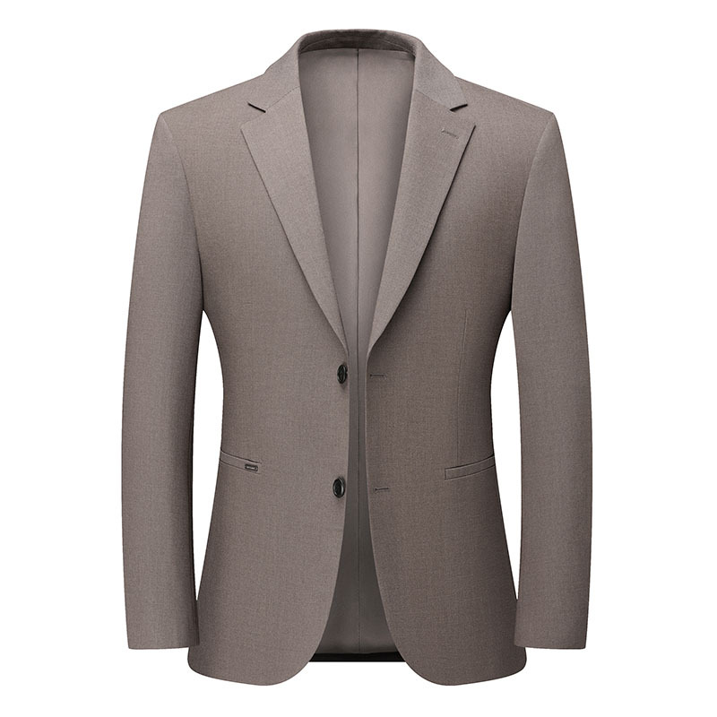 品牌含蚕丝男式西服春秋薄款免烫修身西装商务休闲外套男 190/XXXL 咖啡