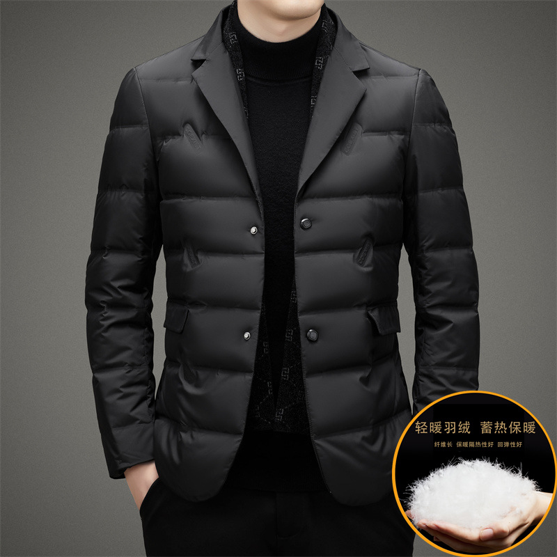 时尚简约西装围巾领羽绒服男士秋冬潮流保暖羽绒服西服款羽绒外套 185/2XL 黑色