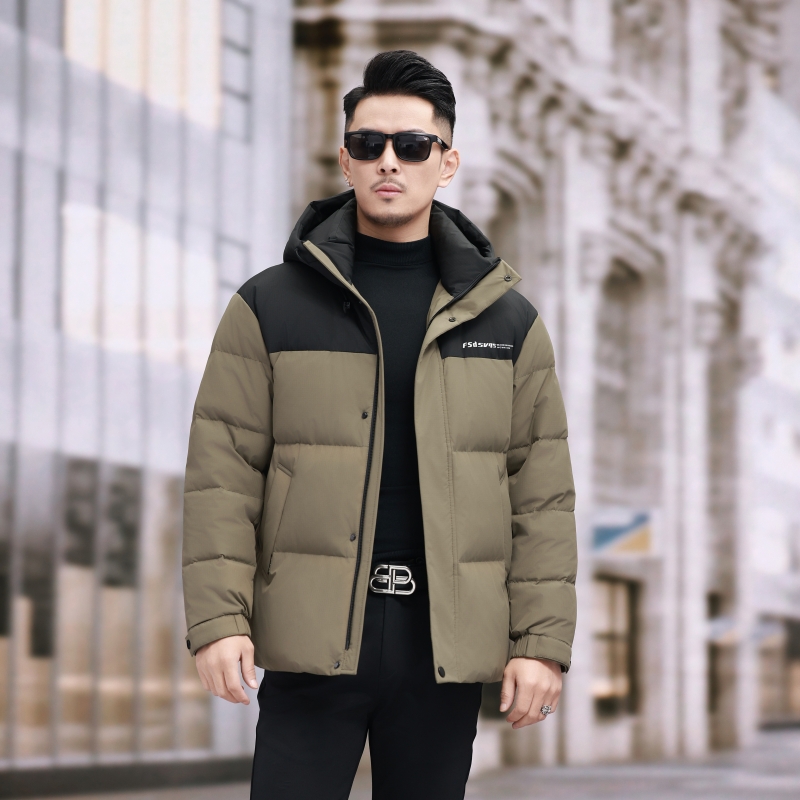 白鸭绒男士羽绒服冬装厚款连帽面包服羽绒服休闲外套冬羽绒服真皮皮衣男士连帽青年冬季加厚保暖外套鹅绒羽绒服 卡其羽绒服 180-XL