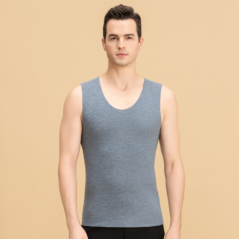 猫人男士保暖背心男秋冬季无痕发热修身打底衫抗菌羊绒无袖上衣 3XL 灰蓝