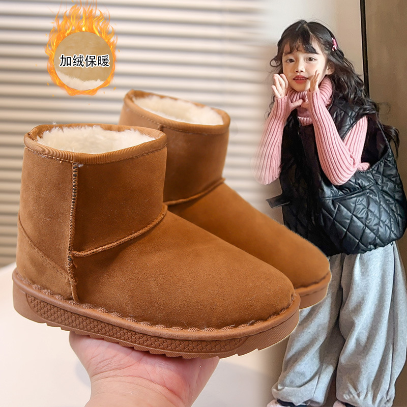 秋冬儿童雪地靴宝宝女童靴子男童靴加绒东北棉鞋加厚保暖童鞋 27码(内长约17cm) 黄色
