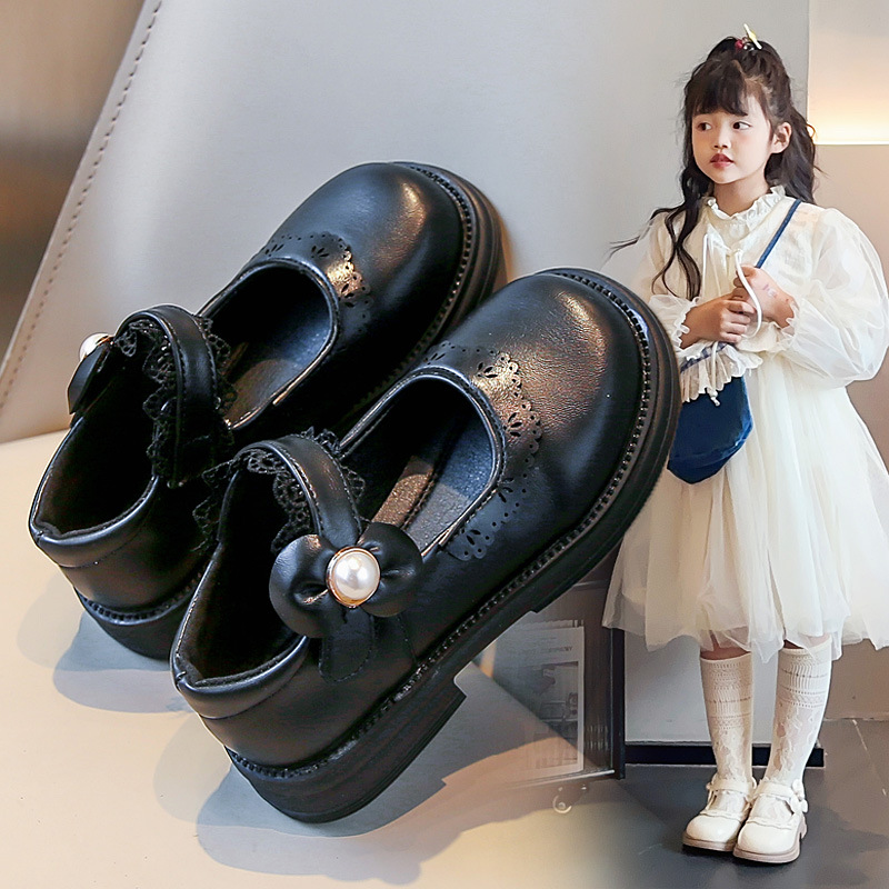 女童鞋子儿童公主小皮鞋秋季新款女孩单鞋轻便低跟学生舞蹈鞋 30码(内长约18.2厘米) 黑色