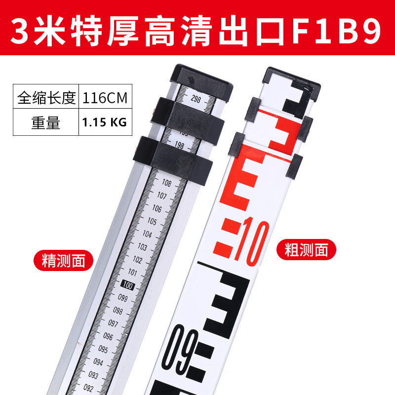 谋福 塔尺测量尺 双面伸缩尺提示牌 加厚塔尺带水泡塔尺双刻度塔尺(3米出口E字)
