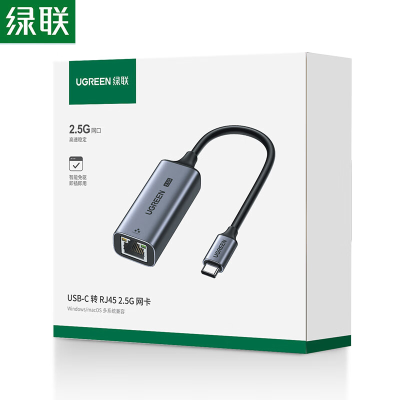 绿联 有线网卡 USB-C转2.5G+RJ45网口+铝壳 25052 件