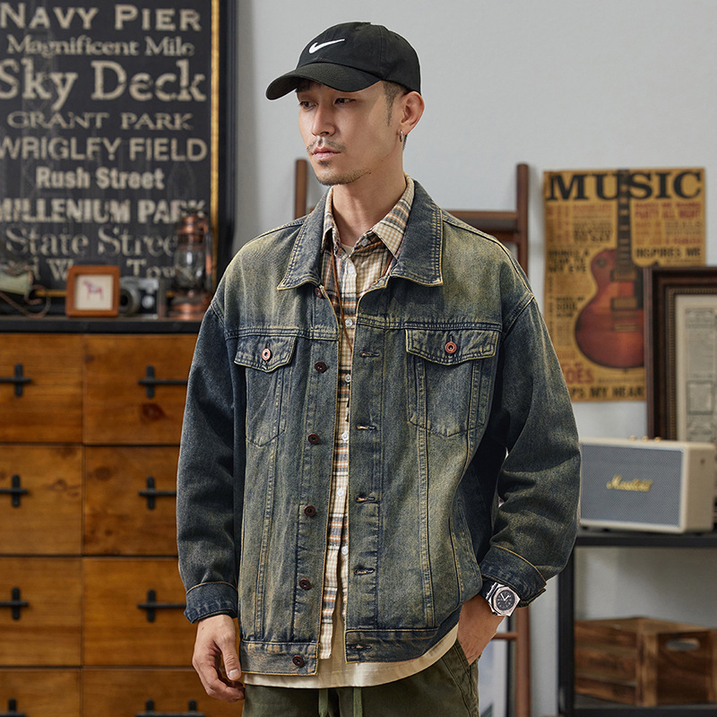 厂家青年牛仔外套男春秋新款复古做旧夹克上衣宽松街头牛仔衣