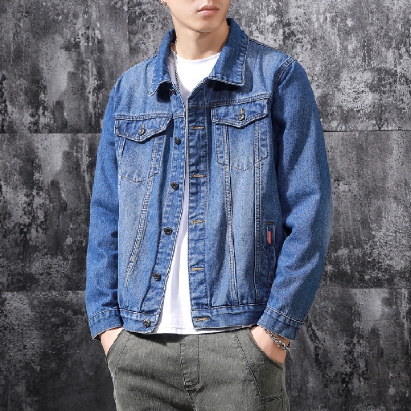 牛仔外套韩版帅气牛仔夹克男青年休闲百搭牛仔男士外套春上衣 L(120斤) 856复古蓝