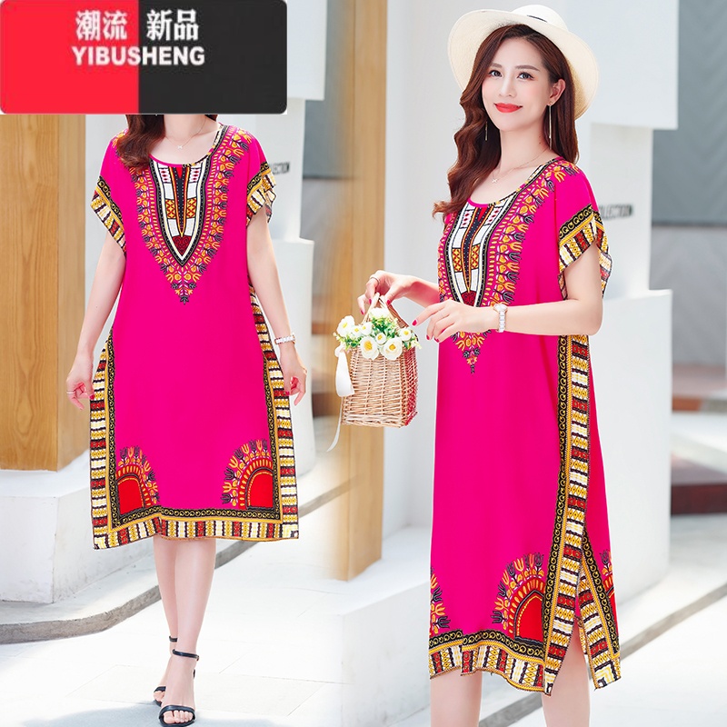 YIBUSHENG棉绸睡裙女大码中老年人季加肥加大妈妈长款睡袍宽松家居长裙家 均码建议80-180斤左右 外贸裙玫红色