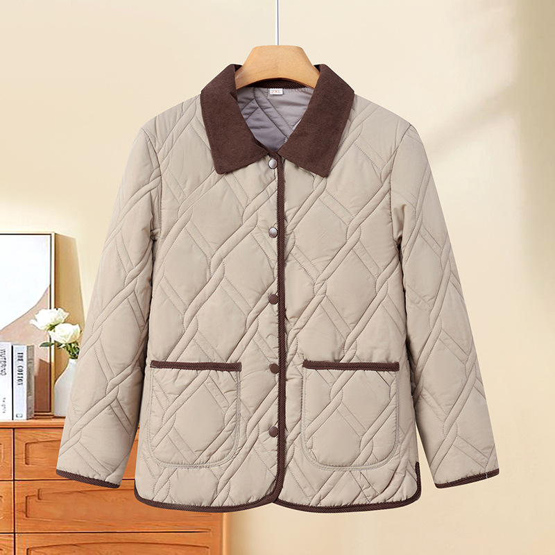 新款妈妈中老年冬装外套女洋气大码中年装翻领女宽松加棉棉服冬装 2XL(建议110斤以下) 卡其色棉衣