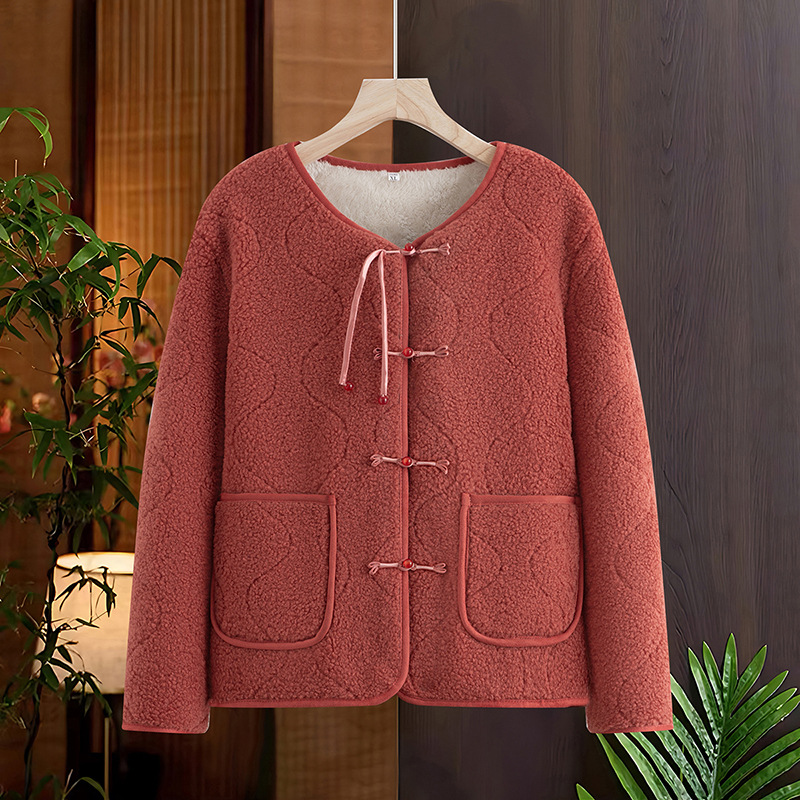 中式妈妈冬装40-50-60岁时尚圆领中老年开衫女年加绒保暖外套 4XL(建议140-155斤) 橘色外套【加绒加厚】
