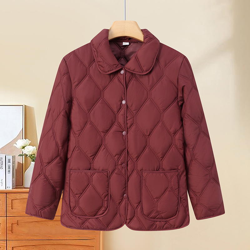 妈妈装冬装棉衣40-60岁中老年薄款棉服外套女时尚简约冬季衣服女 2XL(建议110斤以下) 红色棉衣