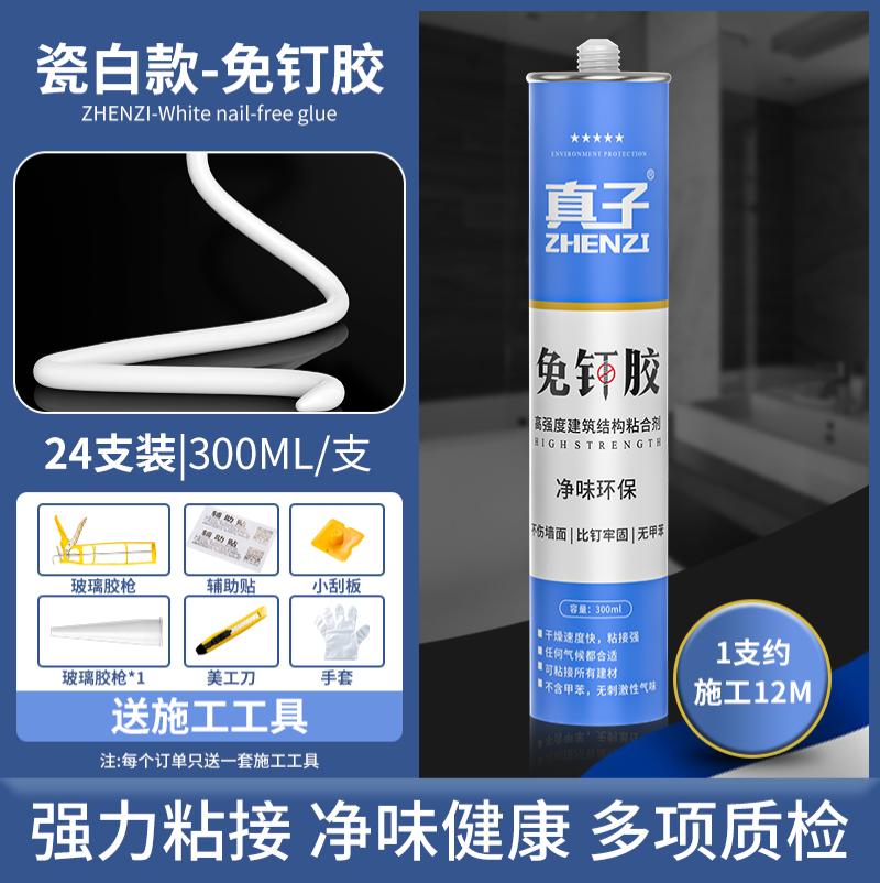 透明免钉胶强力速干粘玻璃胶防水防霉厨卫结构踢脚线专用万能瓷砖--【24支装】瓷白免钉胶+送工具★承重600斤