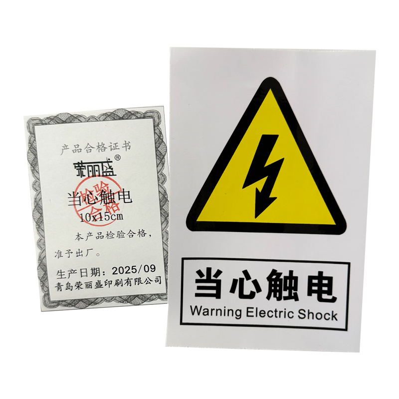 荣丽盛 当心触电 标识贴 车贴材质 定制 10x15cm/个