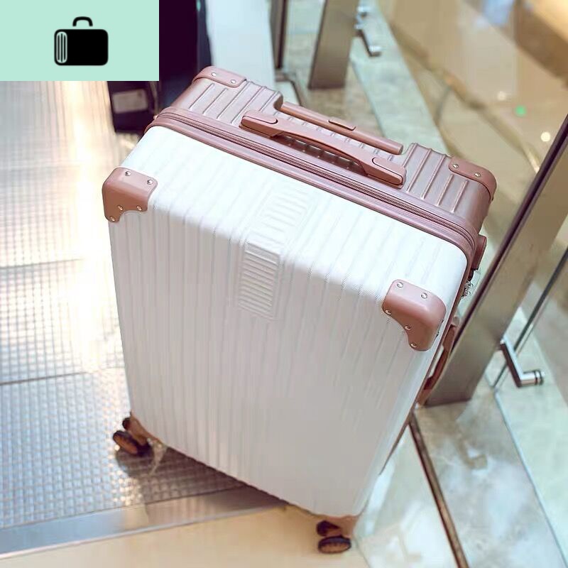 行李箱旅行箱小型铝框20拉杆箱万向轮定制24男女学生密码箱包 707复古拉链白配黑色 22寸