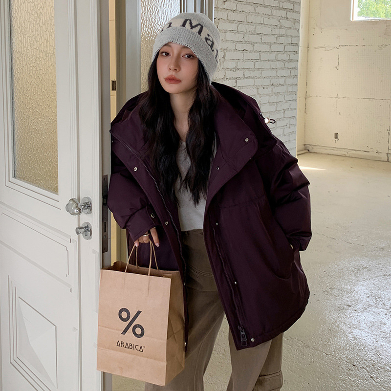 2025冬季新款平湖羽绒服女中长款户外休闲工装派克服洋气韩版加厚 S125斤以内 黑加仑紫