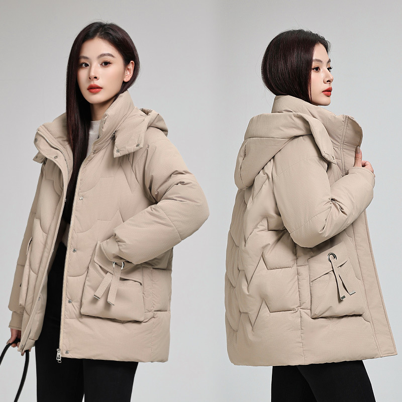 2024冬季新款口袋设计感加厚潮流棉衣时尚连帽百搭洋气羽绒棉服女 XXL 卡其