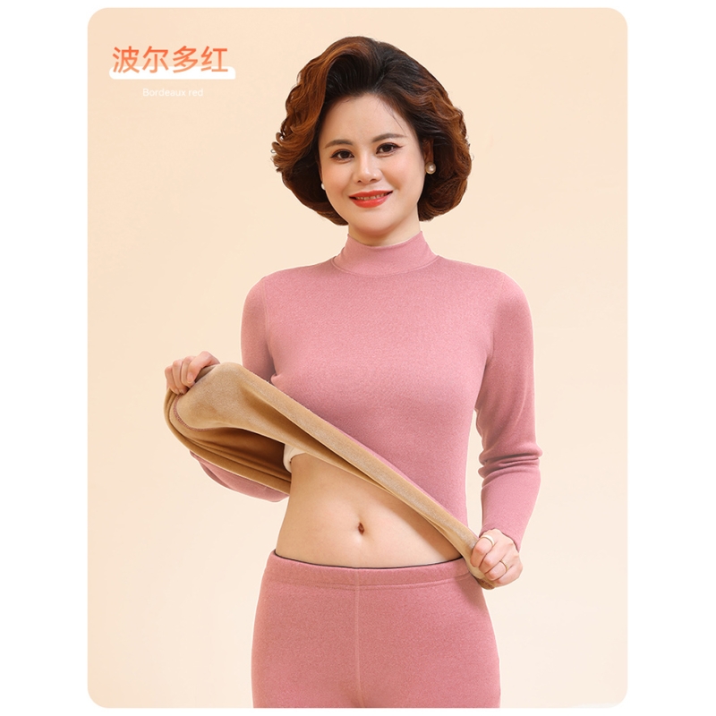 浪莎女士保暖内衣加绒加厚冬季防寒中老年人妈妈秋衣秋裤保暖套装 160(M)推荐80-100斤 波尔多红