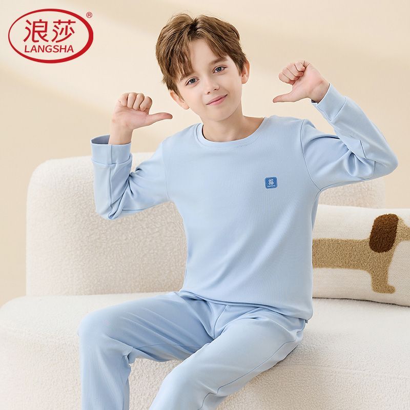 浪莎男童睡衣纯棉长袖春秋薄款家居服套装秋冬中大童全棉睡衣新款 130cm建议40-50斤高120-13 LS27048蓝色