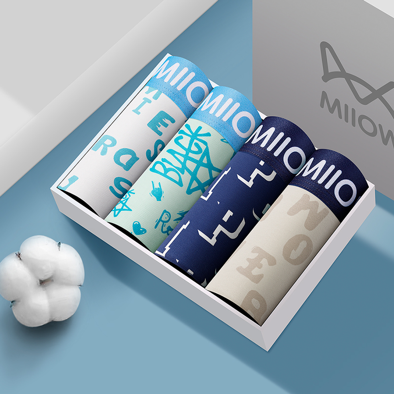 自营 猫人纯棉男士内裤男生抗菌透气四角平角裤头男款运动宽松大码 M (4条装)深蓝印花、浅灰印花、浅绿印花、白色印花