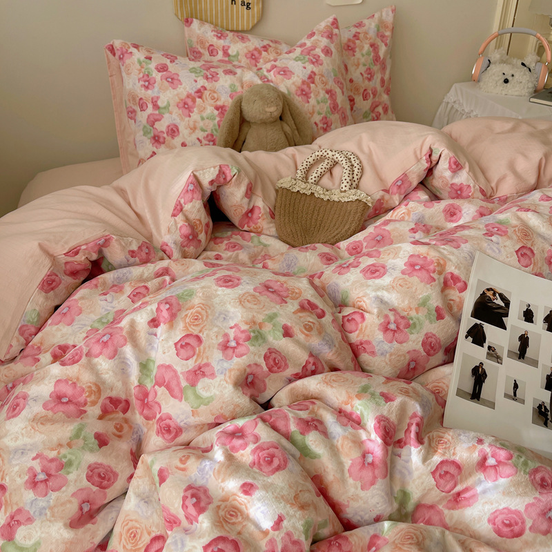 远梦家纺床品套件卡通甜蜜宝贝纯棉床单五件套花中仙子