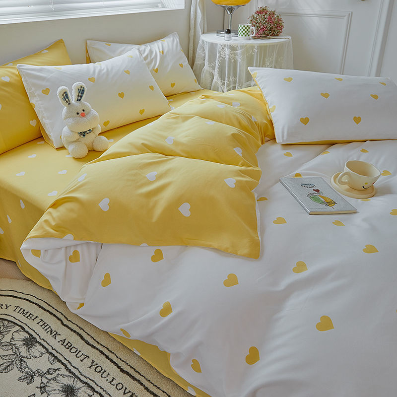 南极人床上四件套被套床品学生宿舍床单三件套床上用套 1.8床单四件套-被套200x230 爱心-黄