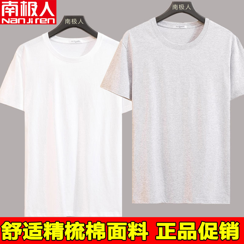 南极人纯棉纯色男士短袖t恤夏季男装半袖打底衫背心黑白灰色 S体重70-100斤 纯色白+灰