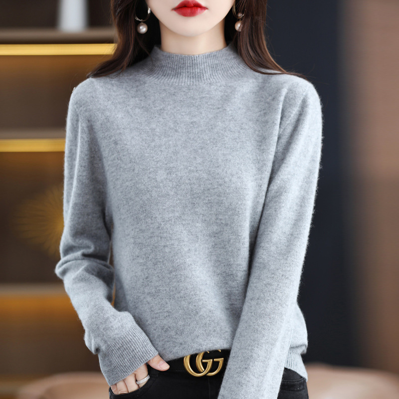 秋冬新款韩版女士半高领打底衫女女士套头打底毛衣内搭针织衫 L 灰色