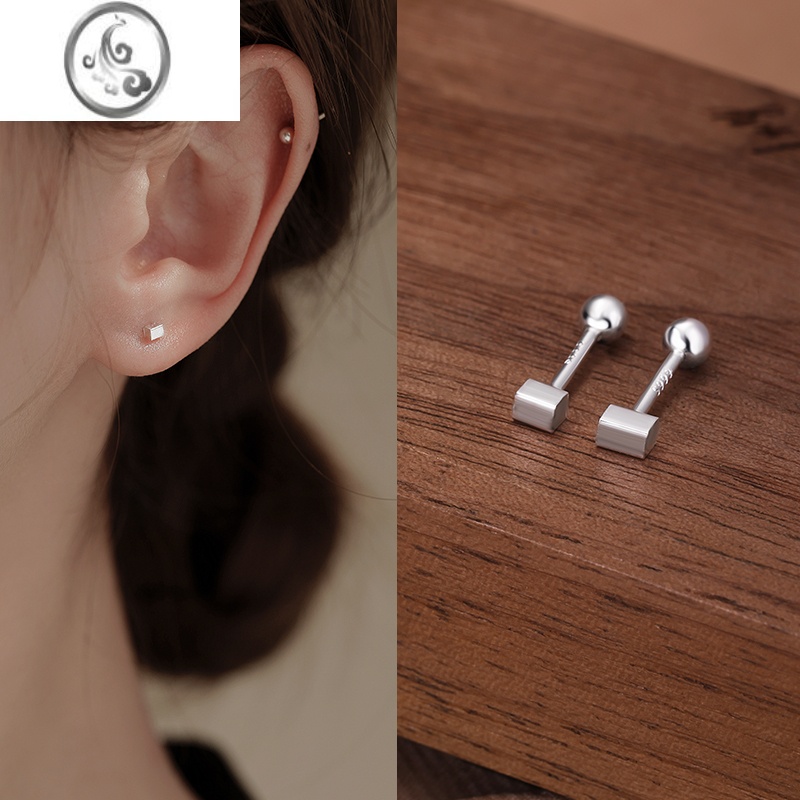 JiMi999银银耳钉养耳洞耳钉女银银耳饰小巧简约睡觉免摘耳钉女防过敏 999足银方糖耳钉