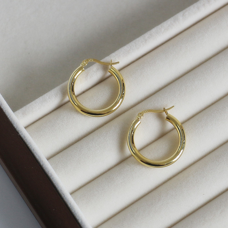 韩版S925纯银耳环极简冷淡风几何圆环圆圈耳环耳扣小众气质银耳饰 金色一对