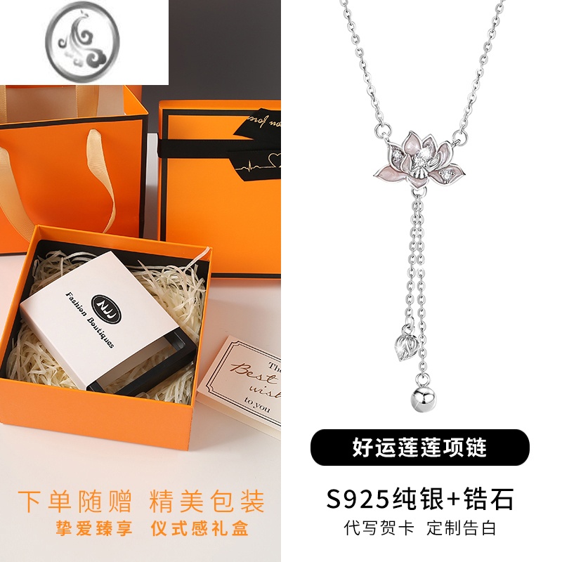 JiMi好运莲莲项链银银吊坠轻奢小众高级感锁骨链2023年新款送女友礼物