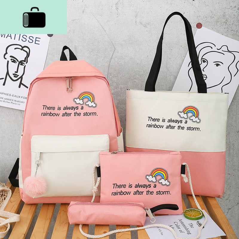 书包女中学生少女韩版高中帆布初中学生双肩包小学生校园百搭背包NEWLAKE 粉色彩虹