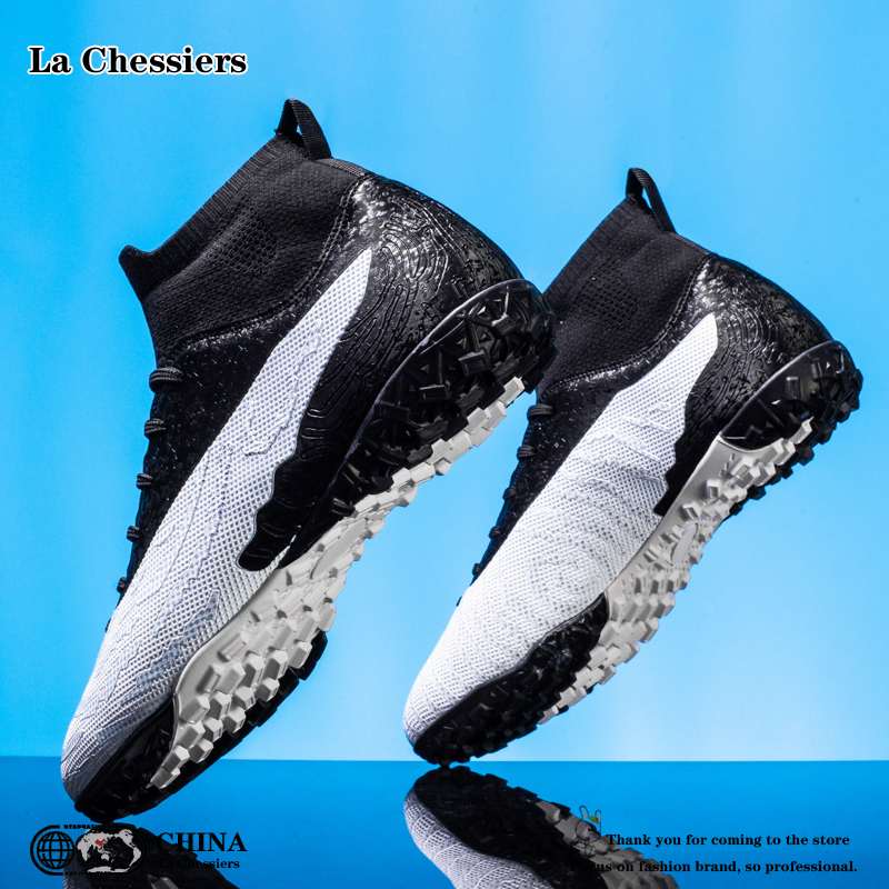La Chessiers户外2024新品青少年高帮成人儿童足球鞋男童成人学生长钉AG碎钉训练女 白色【碎钉】 43码