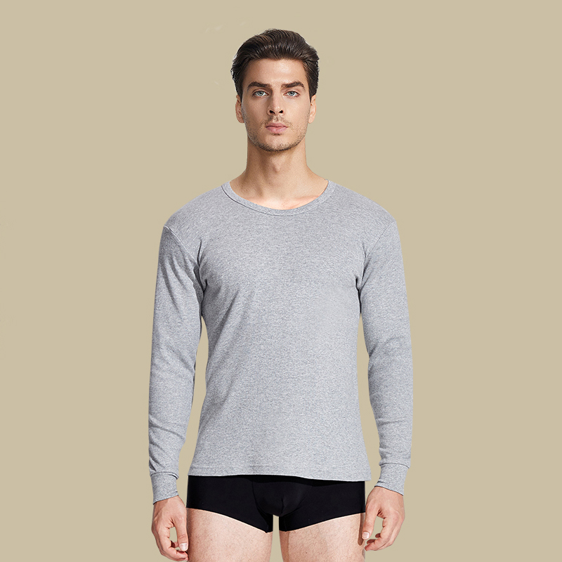 花花公子男士纯棉秋衣保暖内衣单件上衣打底全棉毛衫内穿 XL 浅麻灰
