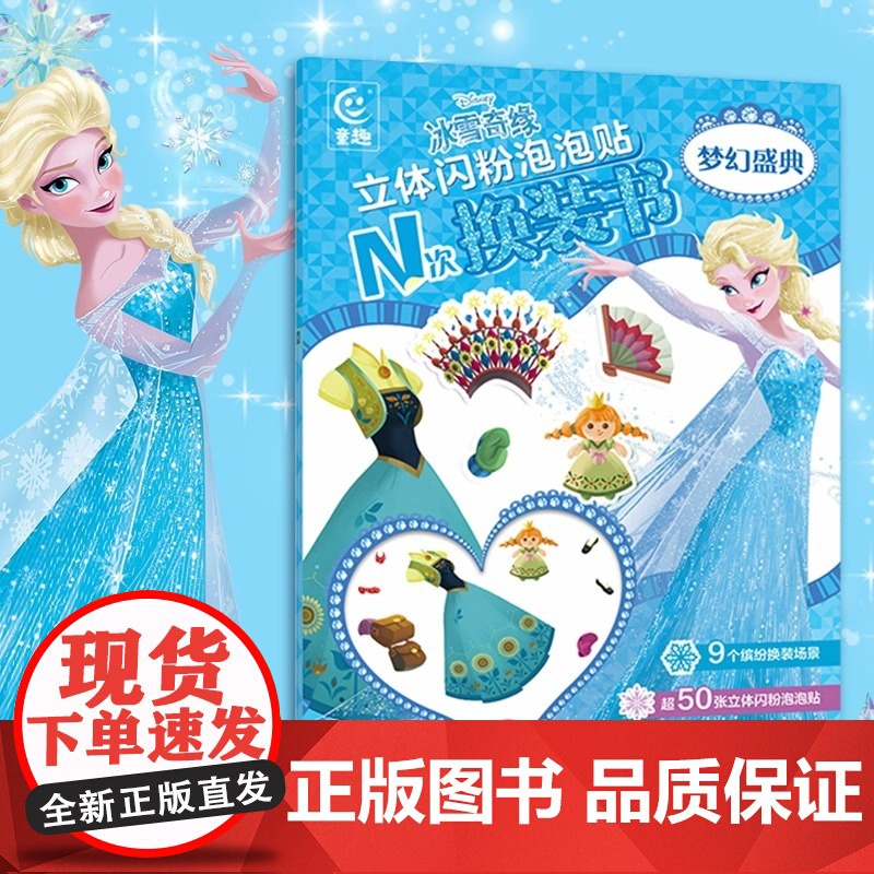 冰雪奇缘立体闪粉泡泡贴N次换装书梦幻盛典3-6-9岁儿童绘画迪士尼公主彩妆贴纸书小女孩手工diy贴贴画过家家礼物节日礼节