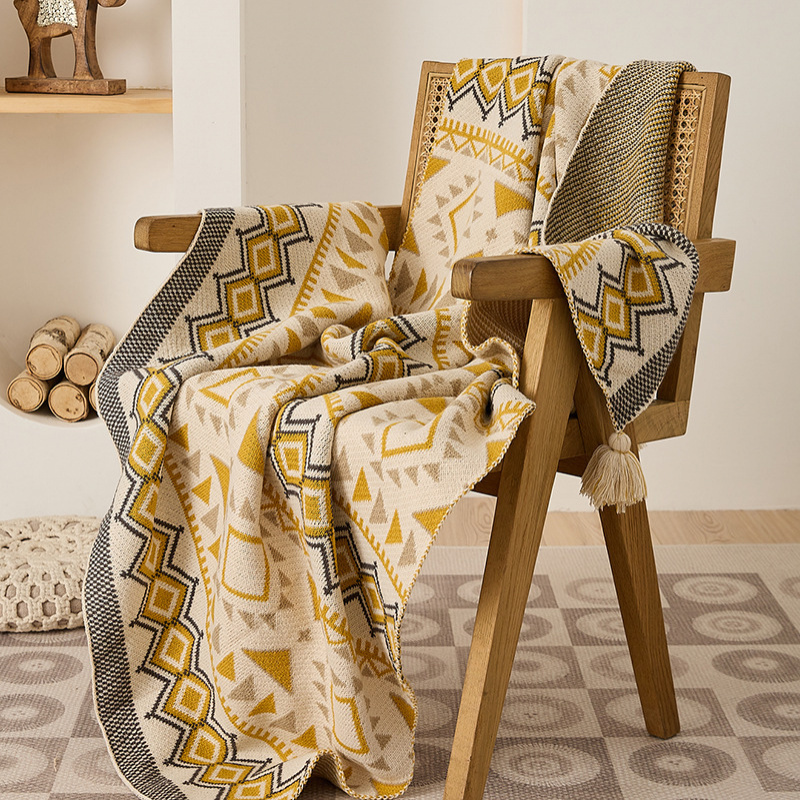 自营 午睡办公室披肩毛毯沙发毯北欧风新中式针织毯盖毯单人斗篷小毯子 120X150cm 图灵-黄色