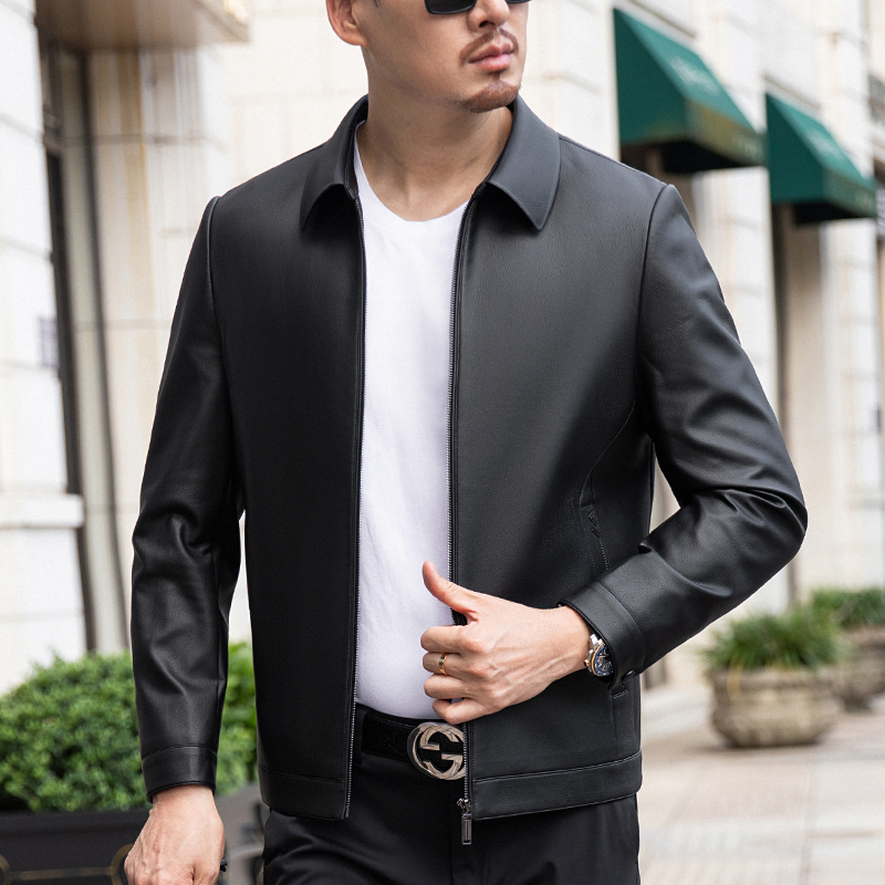 海宁真皮皮衣男山羊皮正品新款翻领皮夹克修身商务休闲头层绵羊皮秋季新款西装款真皮皮衣修身西服外套皮夹克薄 2238翻领黑色加绒 170/M