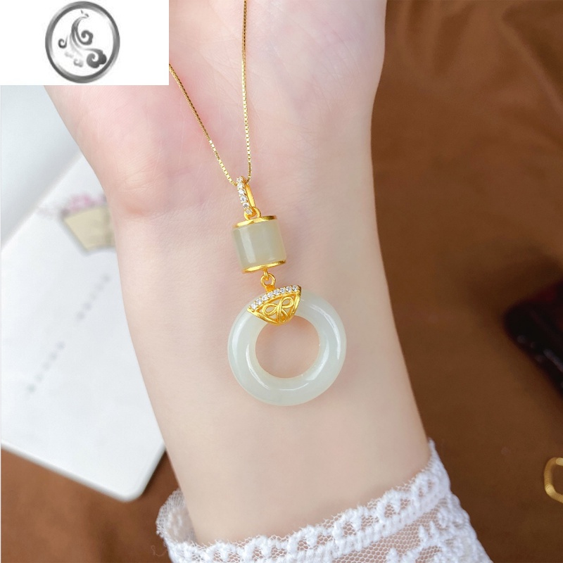 JiMi平安扣金项链女和田玉吊坠轻奢小众搭配毛衣锁骨链送妈妈礼物 平安扣项链