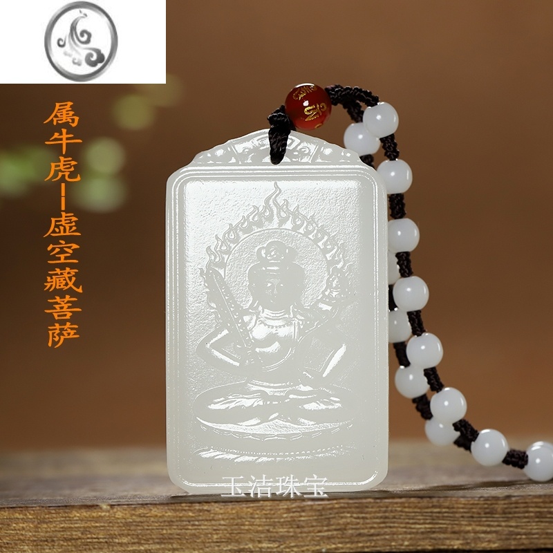 JiMi和田玉吊坠十二生肖文殊菩萨属兔守护阿富汗玉男女士项链 属牛虎--虚空藏菩萨