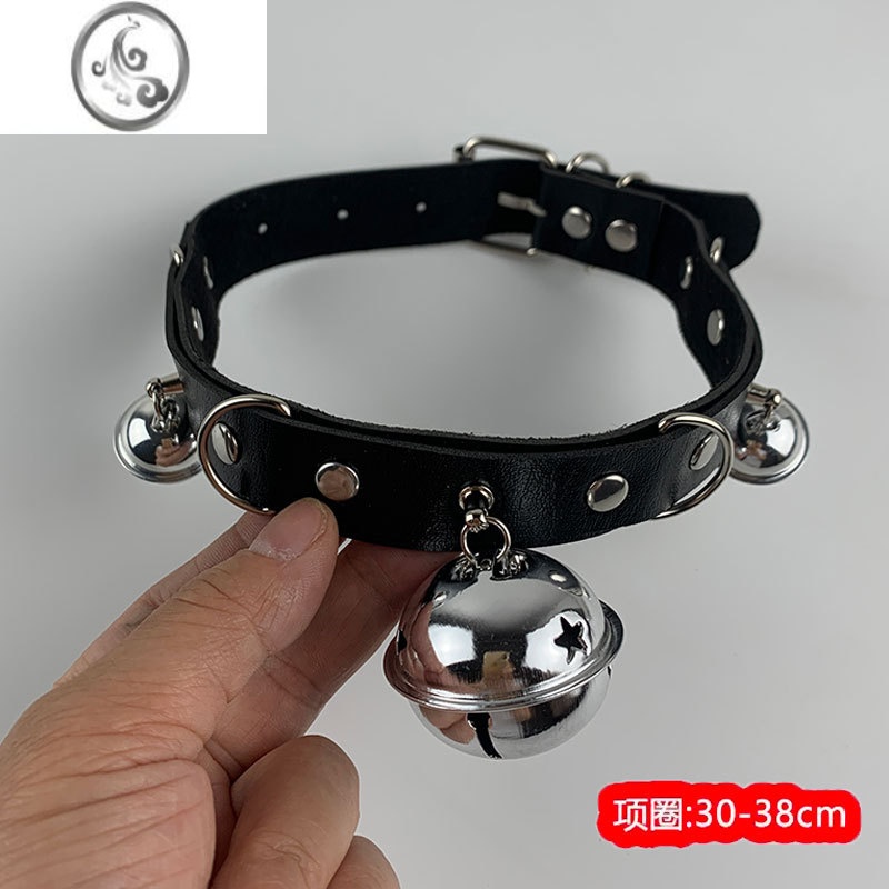 JiMi酷二丫铃铛项圈牵引绳女m性感锁骨链脖环原宿choker狗链项链颈带 黑色3铃铛项圈调节30-38cm