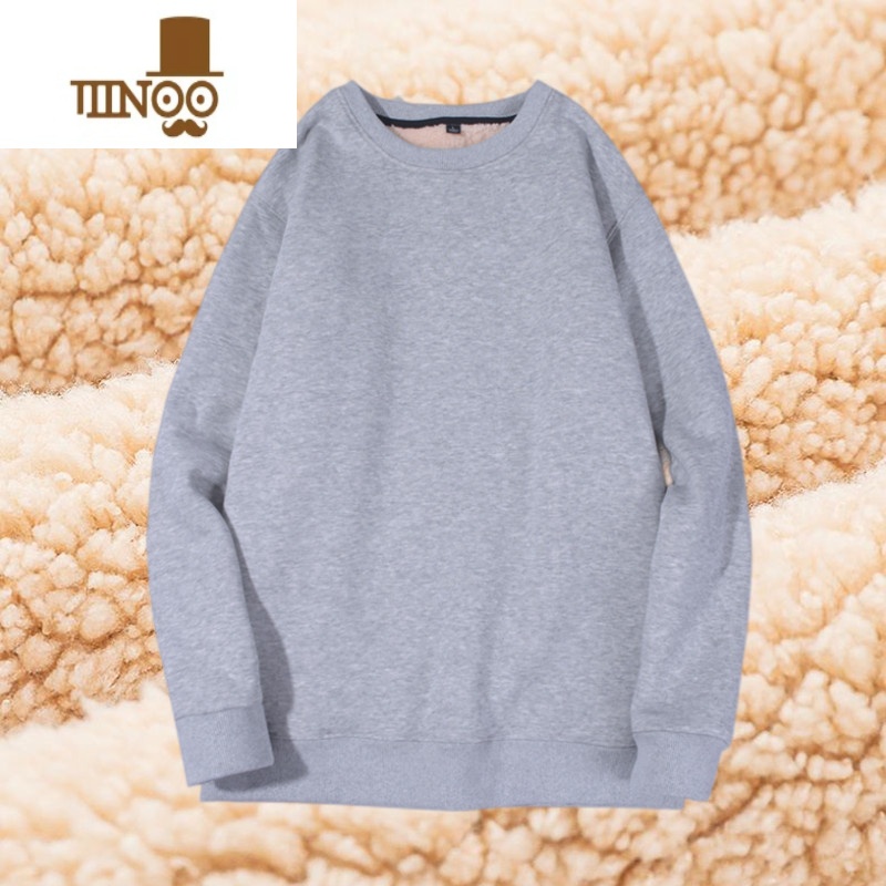 YANXU冬季羔绒卫衣男加绒加厚圆领休闲百搭青少年保暖上衣羔绒外套 M 羊羔绒灰色